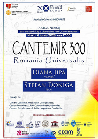 Marţi, 6 iunie 2023, violonista Diana Jipa şi pianistul Ştefan Doniga au susţinut la Liceul de Artă „Victor Brauner”, în sala de festivităţi „Theodor Macarie”, recitalul extraordinar dedicat sărbătoririi personalităţii lui Dimitrie Cantemir, la 350 de ani de la naştere şi 300 de ani de la trecerea în nefiinţă.