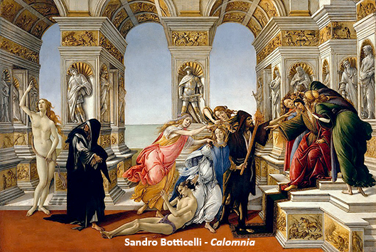 O altă operă a lui Botticelli care mi-a atras atenţia mult în Ufizzi datorită valorii sale moralizatoare este Calomnia, remarcabilă prin modalitatea densă şi sofisticată de personificare a unor defecte umane precum prostia, suspiciunea, ignoranţa, invidia, trădarea. Personajul principal aici este Calomnia, care îşi târăşte victima de păr, în urma lor aflându-se Ispăşirea, care priveşte Adevărul gol arătând cu mâna spre cer. Cuvintele lui Emile Zola din 1896 mi se par absolut sugestive pentru a sublinia unicitatea Calomniei: „Ah! Botticelli! Farmecul şi eleganţa pasiunii în suferinţă, sentimentele profunde ale tristeţii în desfătare! Tot sufletul nostru modern se dezvăluie în această vrajă neliniştitoare, pe care nici o operă de artist nu a arătat-o încă.”