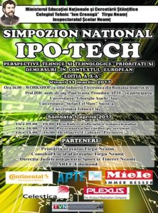 Colegiul Tehnic „Ion Creangă” Târgu Neamţ a organizat, în colaborare cu Inspectoratul Şcolar Judeţean Neamţ, cea de-a X-a ediţie a Simpozionului Naţional de Comunicări Ştiinţifice „Ipo-Tech”. Evenimentul a avut loc pe data de 1 aprilie, adresându-se atât elevilor, cât şi cadrelor didactice şi specialiştilor cu preocupări în domeniile electric, telecomunicaţii, electronică şi automatizări, energetică, electromecanică, mecatronică, dar şi profesorilor de alte specializări care desfăşoară activităţi ce utilizează echipamente electronice, electrotehnice, automatizări, de tehnologia informaţiilor sau soft-uri, în scopul predării disciplinelor proprii.