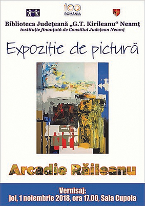 Biblioteca Judeţeană „G.T. Kirileanu” Neamţ a găzduit, în Sala Cupola, în perioada 1-14 noiembrie 2018, expoziţia de pictură a artistului plastic Arcadie Răileanu, eveniment prilejuit de împlinirea a 68 de ani de viaţă şi 36 de ani de activitate expoziţională.