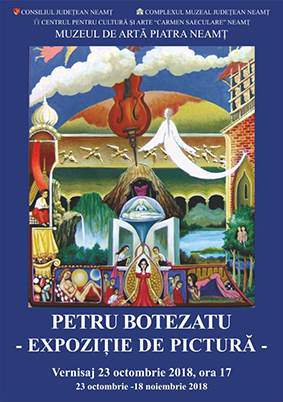Pe 23 octombrie a.c., pe simezele Muzeului de Artă, publicul nemţean a putut admira un număr consistent de lucrări semnate de Petru Botezatu, selecţii din ciclurile „Imaginaria” şi „România mitică”. În încheierea vernisajului, cvartetul „Colosseum” a susţinut un recital instrumental, moment artistic asigurat de Centrul pentru Cultură şi Arte „Carmen Saeculare” Neamţ.