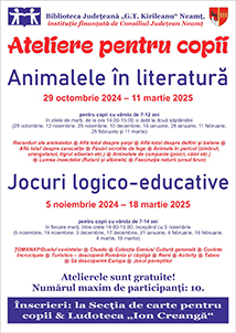 Biblioteca Judeţeană „G.T. Kirileanu” Neamţ a organizat două serii de ateliere pentru copii, începând cu data de 29 octombrie anul acesta şi până în luna martie a anului 2025.