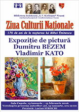 A urmat vernisajul expoziţiei de pictură Dumitru Bezem şi Vladimir Kato, cu prezentarea scriitorului Lucian Strochi. Apoi, scriitorul Lucian Strochi a susţinut conferinţa „Se bate miezul… zilei. Vecinicia lui Eminescu”.
