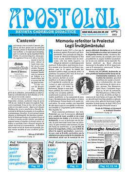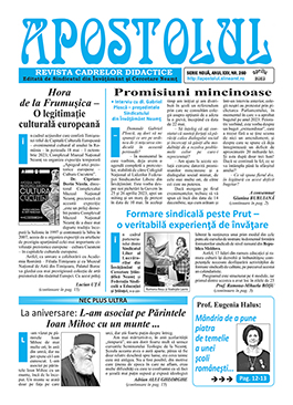 • Mircea ZAHARIA – Revista Apostolul, un pod peste Prut (pag. 1-3) * Nu vreau să fiu profesor! (pag. 16-17)