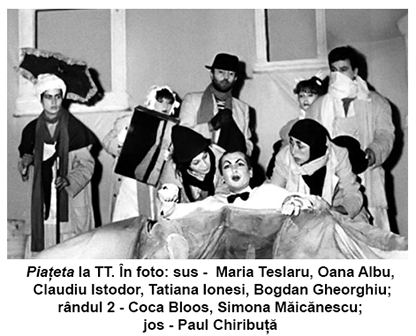 Regia lui Silviu Purcărete este caracterizată prin maturitate şi rafinament, printr-o melancolică discreţie, care colorează întreaga atmosferă. Decorurile şi costumele, semnate de Nina Brumuşilă, alături de muzica diafană a lui Vasile Şirli, transformă personajele în figuri de basm, fără a le rupe de realismul social al piesei. Această „suprarealitate verosimilă”, cum o sugerează autorul, permite actorilor să nu ilustreze simpli indivizi, ci să compună personaje credibile, puse în mişcare de imaginaţie şi fantezie. Prezenţa actorilor Oana Pellea, Coca Bloos, Tatiana Ionesi, Traian Pârlog, Paul Chiribuţă conturează o lume densă, oameni care cunosc valoarea vieţii, dar care nu se tem să viseze, să se zbuciume şi să iubească. În încheiere, articolul acordă spectacolului Piaţeta o semnificaţie aparte în parcursul artistic al Teatrului Tineretului, prezentându-l ca moment de sinteză şi de bilanţ simbolic al unei etape importante din viaţa instituţiei. Montarea este plasată în contextul mai larg al manifestărilor aniversare dedicate celor 25 de ani de existenţă, dar capătă, în acest cadru, valoarea unei închideri fireşti a ciclului comemorativ. Articolul vede în acest moment o sărbătoare a continuităţii, unde reperele consolidate de-a lungul anilor, dorinţa de explorare şi deschiderea spre formule scenice noi se întâlnesc într-un enunţ unitar. Reuniunea foştilor şi actualilor membri ai trupei sugerează o legătură importantă, care depăşeşte planul profesional şi care indică existenţa unei identităţi culturale evidente.