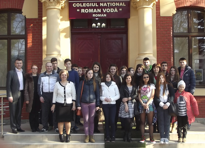 Aşadar, parteneriatul nostru a început în primăvara anului 2014, când zece elevi, însoţiţi de patru cadre didactice au avut fericita ocazie de a se deplasa în Roman, municipiu înfrăţit cu oraşul nostru, la invitaţia dnei. Mihaela Tanovici, directorul Colegiului Naţional „Roman-Vodă” şi a dnei. Nadejda Anghel (originară din Ştefan Vodă), preşedintele Asociaţiei Culturale Pro Basarabia şi Bucovina „Ion Vatamanu”. Scopul invitaţiei era participarea noastră la simpozionul internaţional dedicat celor 96 de ani de la Unirea Basarabiei cu România, din 27 martie 1918.