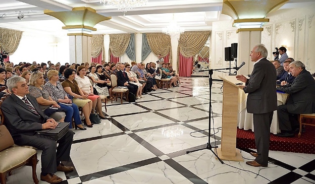 Pentru începutul întrunirii, preşedintele Simion Boţan a prezentat oaspeţii redutabili sosiţi în musafirie la „floarea” învăţământului din Orhei: oficialităţi din conducerea Confederaţiei Naţionale a Sindicatelor şi a Federaţiei Sindicale din Educaţie şi Ştiinţă, lideri sindicali din Chişinău, Hânceşti, Ştefan Vodă, Rezina, Ungheni ş. a. Au fost prezenţi, de asemenea, reprezentanţi ai autorităţilor publice din Orhei, lideri sindicali locali. După acest moment protocolar, amfitrionul Simion Boţan a oferit microfonul oaspeţilor care au adresat asistenţei pedagogice orheiene mesaje cordiale de felicitare şi consideraţie cu prilejul finalizării cu succes a anului de studii 2018-2019 şi debutului vacanţei de vară. Majoritatea vorbitorilor au subliniat contribuţia semnificativă a sindicaliştilor din Educaţie la protejarea drepturilor fundamentale ale angajaţilor din domeniu, implicarea lor susţinută în implementarea Legii unice de salarizare. Totodată s-au adresat către Guvern şi Parlament propuneri concrete, solid argumentate, pentru modificarea anumitelor clauze ale actului legislativ menţionat. Vorbitorii s-au referit la problema eradicării fenomenului de exod masiv al populaţiei active din Moldova, precum şi la cea a contracarării sărăciei cumplite a oamenilor de vârstă pensionară, şi nu numai. În această ordine de idei, s-a lansat propunerea de dinamizare a dialogului social şi a cooperării constructive în configuraţia parteneriatului amiabil APL – oameni de afaceri – sindicate întru asistarea şi încurajarea, nu doar morală, a pensionarilor – foşti şi actuali sindicalişti. Or, „asigurarea lor cu suport necondiţionat este misiunea nobilă a activiştilor sindicali”, susţin atât factorii de decizie din Orhei, cât şi conducerea CNSM, care au dat asigurări că vor sprijini toate iniţiativele şi acţiunile pentru îmbunătăţirea condiţiei social-economice şi de viaţă a membrilor de sindicat.