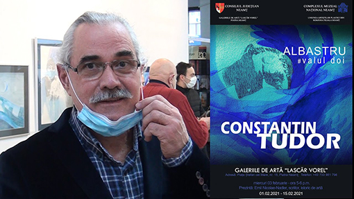 Miercuri 3 februarie 2021, la Galerii de Artă „Lascăr Vorel” a avut loc vernisajul expoziţiei „ALBASTRU # valul doi”, creaţie a pictorului ieşean Constantin Tudor. Născut în anul 1958 la Osoi, judeţul Iaşi, este absolvent al Universităţii Naţionale de Arte „George Enescu”, specializarea pictură, fiind în prezent cadru didactic la aceeaşi instituţie. Este membru al Uniunii Artiştilor Plastici din România din anul 1990. Are o vastă activitate expoziţională, concretizată în expoziţii personale şi colective şi numeroase lucrări în colecţii particulare din România, Canada, Marea Britanie, S.U.A.