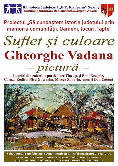 În perioada 1-20 februarie 2022, Biblioteca Judeţeană „G.T. Kirileanu” Neamţ a organizat expoziţia Suflet şi culoare, în memoria profesorului şi artistului plastic Gheorghe Vadana. Tablourile expuse provin din colecţiile particulare Tincuţa şi Emil Neagoie, Caraza Rodica, Nicu Gherasim, Mircea Zaharia, Anca şi Dan Catană.