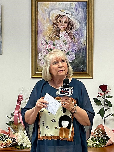 Singurul portret care se regăseşte în expoziţie are o însemnătate aparte pentru plasticiană şi familia ei. Este portretizată Andreea, nepoata mea, care în curând va împlini 24 de ani şi i-am făcut o surpriză. Iubeşte foarte mult bujorii, de aceea am ales această reprezentare. În ziua când va împlini 24 de ani, ea se va căsători, a mai adăugat Marcela Popescu.