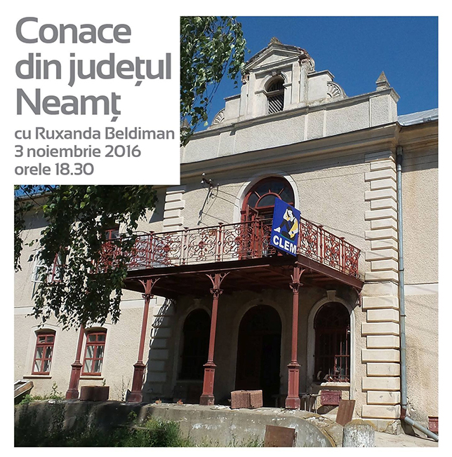 19-ap193-foto2Cinci conace boiereşti din judeţul Neamţ au făcut subiectul unei conferinţe organizate, pe data de 2 noiembrie, la Palatul Şuţu din Bucureşti. Conferinţa „Conace din judeţul Neamţ” a fost susţinută de istoricul de artă Ruxanda Beldiman, prezentarea propunându-şi să aducă în atenţia publicului cinci edificii reprezentative pentru arhitectura rezidenţială nobiliară din mediul rural al judeţului Neamţ.