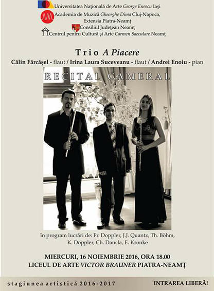 Concert de flaut şi pian, susţinut de trio-ul „A Piacere”