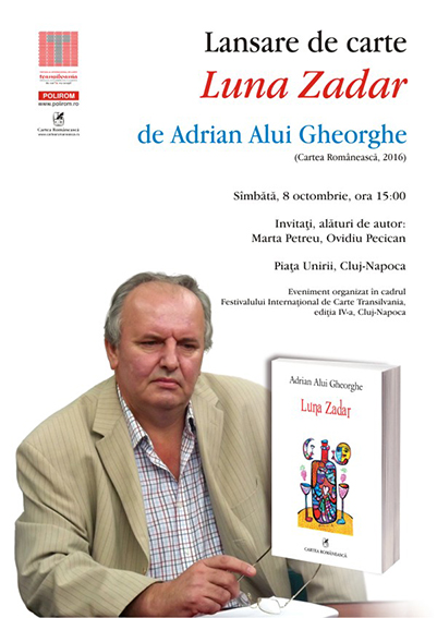 Urma (2013) şi Laika (2014) au fost două excelente microromane politice cu oameni şi fapte, adică „aşezate”, în genul lor. Poet, prin vocaţie, Adrian Alui Gheorghe a arătat, cu ele, că poate scrie proză, şi încă una bună. Acum a schimbat registrul. Subintitulat „roman”, Luna Zadar (Cartea Românească, 2016) e, de fapt, un macropoem în proză despre identitate, tristeţe şi suferinţă, într-o lume dată peste cap de războaie, dictaturi, trădări şi imoralitate. Prietenia, loialitatea, iubirea, ancora socială a familiei par golurile recente ale omenirii, deplânse constant de lungul discurs al lui Albert, naratorul-personaj. Cu inserţii dramatice (numele vorbitorilor sunt trecute, uneori, la începutul replicilor) şi dese interstiţii poetice, cu decalaje temporale şi spaţiale (înainte şi după 1989, în România; după 1990 în Serbia şi Suedia) şi monoloage despre relativitate şi nihilism, cu mici parabole sapienţiale hazlii şi simbolizări aparent exterioare subiectului, romanul lui Adrian Alui Gheorghe poartă din plin amprenta poeziei. În ritmuri diferite, frazele sunt organizate ca nişte versuri lungi, inclusiv în partea a doua, care e mai pronunţat narativă şi mai elocventă, pentru întregul mesaj al cărţii.
