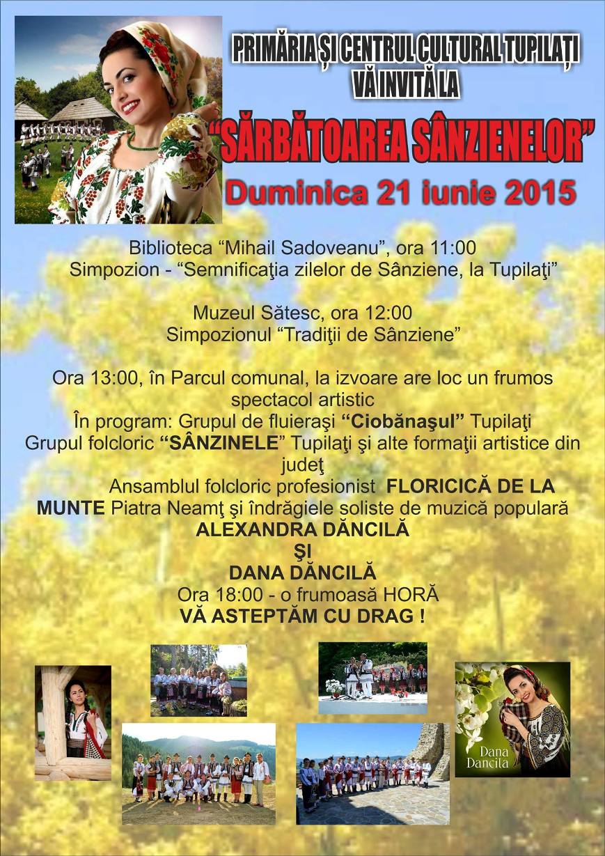 „Sărbătoarea Sânzienelor reprezintă şi un prilej de întâlnire a tinerilor ce doresc să-şi unească destinele, o sărbătoare a iubirii, cinstită cum se cuvine, cu cântec şi joc. Nu vor lipsi meşterii populari, care-şi vor prezenta obiectele artistice, nici comercianţii care îi vor încânta pe cei prezenţi cu felurite gustări specifice bâlciului de altădată”, a spus Romică Leonte, bibliotecar şi director al Căminului Cultural Tupilaţi.