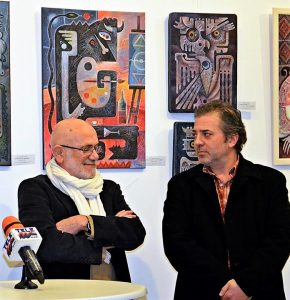 Emil Nicolae, critic de artă: „Revederea unei expoziţii, în capul meu, ar fi precum recitirea unei cărţi. Am citit-o la Roman şi o mai citim şi aici. Să ştiţi că şi o expoziţie se poate citi. Este chiar recomandabil. La recitire, nu o mai iei de la capăt, filă cu filă, o iei pe sărite. Cauţi paginile în care ai rămas legat de o poveste sau în care l-ai identificat stilistic pe autor. Să închidem cartea şi să ne oprim la nişte file. Fiind doi autori, caut câte o filă pentru fiecare. Vă leagă meşteşugul, un fel de aplicaţie pe artefact. Ies lucruri diferite, pentru că imaginarul fiecăruia dintre voi are alte particularităţi”.