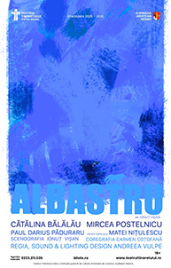 În momentul scrierii acestor rânduri sunt repetiţii însufleţite pentru premiera ce va avea loc pe 21 şi 22 februarie: ALBASTRU, pe text de Ionuţ Sociu, regia Andreea Vulpe, cu actorii Cătălina Bălălău şi Mircea Postelnicu, cu participarea copilului Paul Darius Păduraru, secondat de vocea copilului Matei Niţulescu. Scenografia îi aparţine tot lui Ionuţ Sociu, iar mişcarea scenică lui Carmen Coţofană. Regizoarea Andreea Vulpe a creat, de asemenea, universul sonor şi luminile.
