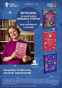 A doua reprezentaţie am fixat-o chiar pe 15 februarie, de Ziua Naţională a Lecturii, când am avut-o invitată chiar pe Adriana Ştefan, autoarea poveştilor din spectacolul-lectură menţionat. Dacă în decembrie 2025 l-am avut invitat pe Mihai Mănescu, autorul volumelor după care am creat două spectacole-lectură la începutul stagiunii actuale, am continuat acest demers de a le arăta copiilor că există şi scriitori vii, contemporani cu ei, nu doar cei morţi, canonici, din manuale. Întâlnirea cu scriitorul e o formă puternică de a-i apropia pe copii de cărţile de literatură. Curiozităţile copiilor adresate scriitorului devin o punte care face viaţa mai uşoară învăţătorilor şi profesorilor de limba şi literatura română.