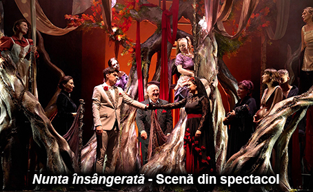 Marile direcţii tematice din Nunta însângerată (iubirea, interdicţia, ereditatea, tradiţia, destinul), la fel ca simbolurile cu care operează poetul andaluz (calul, cuţitul, luna, sângele, moartea) rămân, aşadar, intacte. Servite cu sensibilitate de regie, sunt integrate într-o lume ce se deschide sub ochii noştri: e stranie, exotică, uneori delicat-datată, alteori plutindă în atemporalitate poetică. Ne tulbură, ne contrariază, ne confiscă. (…) Una din scenele greu de uitat este cea din final, scenă eminamente tragică, în care întreaga partitură a Antoniei e condusă spre un strigăt al purităţii, dar şi al nevoii de purificare. A te întoarce în lumea impură de fiecare zi cu acest sentiment de urgenţă neo-cathartică mi se pare unul din câştigurile majore ale spectatorului de la Nunta însângerată. Le fel, posibilitatea de a experimenta tragicul în condiţiile în care, oficial, am conchis deja că tragicul nu mai e posibil (Steiner), şansa de a simţi mila şi frica (alte semne oficializate ale tragediei), apoi gustul perfid-excitant al meta-raţionalului transportat de tradiţie – toate acestea sunt alte privilegii de receptare cu care ieşim din sala de spectacole. E un final ce stă şi sub semnul Mamei, rol excelent acoperit de Cătălina Eşanu, notabilă prin revenirea actoricească în forţă pe care o probează. Actriţa ne prilejuieşte simultan întâlnirea cu acea Mamă din povestea lui Lorca, dar şi cu ideea de Mamă generică, universală, ce traversează spaţiile şi timpurile, unindu-le în sinteză afectivă şi făcând ca o tandră Andaluzie să renască, la aproape o sută de ani, în chiar inima teatrală a unui oraş montan din estul Europei.”