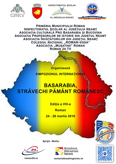 Cea de-a VIII-a ediţie a Simpozionului Internaţional „Basarabia, străvechi pământ românesc”, eveniment dedicat împlinirii a 98 de ani de la Unirea Basarabiei cu România, s-a desfăşurat, în perioada 24 – 26 martie, la Colegiul Naţional „Roman-Vodă”. Evenimentul a fost organizat în colaborare cu Primăria Municipiului Roman, Inspectoratul Şcolar al Judeţului Neamţ, Asociaţia Culturală „Pro Basarabia şi Bucovina” Roman, Asociaţia „Muşatinii” Roman, Asociaţia Profesorilor de Istorie din Judeţul Neamţ, Asociaţia Învăţătorilor din Judeţul Neamţ şi Roman 24 TV.