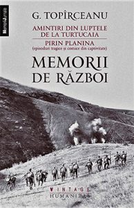 În anul 1916, la sfârşitul verii, când România tocmai intrase în Marele Război, poetul G. Topârceanu, sergent într-un regiment de artilerie grea, amenaja poziţiile de pe malul drept al Dunării. Au urmat asaltul trupelor bulgaro-germane sub comanda mareşalului August von Mackensen şi cinci zile de lupte cumplite: dezastrul de la Turtucaia. Au murit pe câmpul de bătălie peste 6.000 de români, iar Topârceanu a împărtăşit soarta celor 28.000 de prizonieri. Memoriile sale din război, publicate în două volume (Amintiri din luptele de la Turtucaia, 1918, şi Pirin Planina, 1936), aduc lumină asupra unuia dintre episoadele importante ale istoriei noastre peste care s-a aşternut uitarea. Din paginile acestea de valoare literară certă, în care deznădejdea se împleteşte cu speranţa, cu observaţia lucidă, cu lirismul şi, de multe ori, cu umorul, lumina omeniei se ridică peste toate grozăviile unei tragedii istorice care nu a cruţat nimic. (Daniel CAIN)