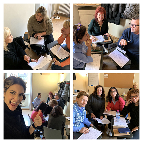 Aşadar pe 27 noiembrie la ora 9, ne-am reunit 10 cursanţi veniţi din Grecia, Spania, Danemarca şi România. Spre deliciul nostru, am constatat încă din prima zi că suntem un grup omogen, plăcut, entuziast, motiv pentru care sarcinile de lucru s-au realizat cu interes şi uşurinţă. Toate acestea au fost posibile mai ales datorită îndrumărilor şi sugestiilor pe care le-am primit de la profesoara noastră Susan Gagliano. Născută în SUA, dar stabilită de foarte mulţi ani în Italia, Susan ne-a dat un exemplu despre ce înseamnă să îmbini profesionalismul maxim cu spiritul ludic, ne-a deschis o nouă viziune asupra şcolii şi rolului dascălului, asupra aşteptărilor elevilor noştri, ne-a dat adevărate lecţii de pedagogie dar şi de viaţă. Au fost 5 zile despre care pot spune că mă vor marca în parcursul meu de profesor, cele patru aspecte care au constituit subiectul cursului – creativitatea, gândirea critică, comunicarea şi colaborarea – fiind considerate competenţe cheie pentru secolul 21, abilităţi necesare inovării, care, contrar unor păreri, pot fi predate, învăţate şi implementate în orice clasă. Altfel spus elevii şi le pot însuşi în experienţele lor de zi cu zi din şcoală, fiindu-le de folos pentru întărirea încrederii în sine, pentru conectivitatea cu ceilalţi, pentru a reuşi să muncească mai bine în viitor. Totodată aceştia vor fi mai bine înarmaţi pentru a-şi găsi locul din punct de vedere profesional, personal, social, în această lume în continuă schimbare.